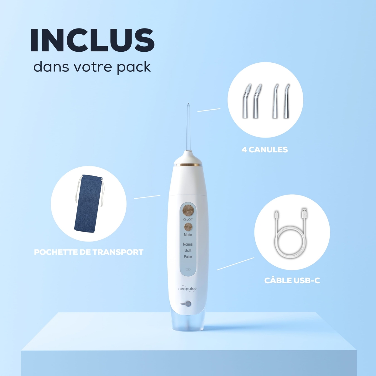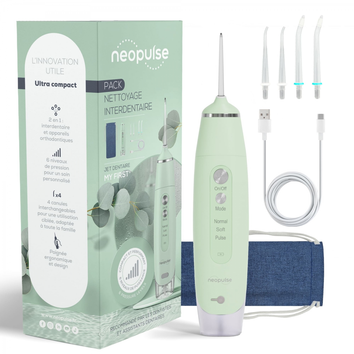 Le MY FIRST est un jet dentaire ultra-léger (335g) et compact, conçu pour s’adapter aux besoins de toute la famille. Avec ses 6 niveaux de pression et ses pulsations allant jusqu'à 1700 puls/min, il offre un nettoyage personnalisé et efficace. Alimenté par USB-C, il est livré avec 4 canules et une pochette de transport pour une hygiène parfaite, même en déplacement.
