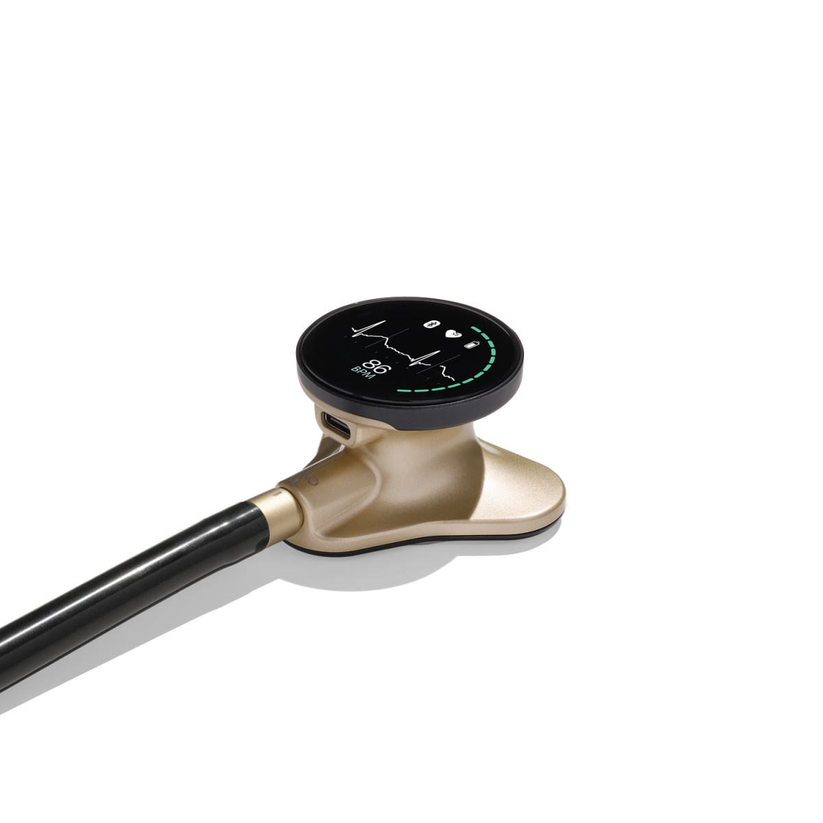 Visualisez les informations en quelques secondes : l’écran couleur affiche l’ECG à 1 dérivation, les détails de l’examen et les paramètres de l’appareil directement sur le stéthoscope, simplifiant votre flux de travail et fournissant des données essentielles à portée de main.
