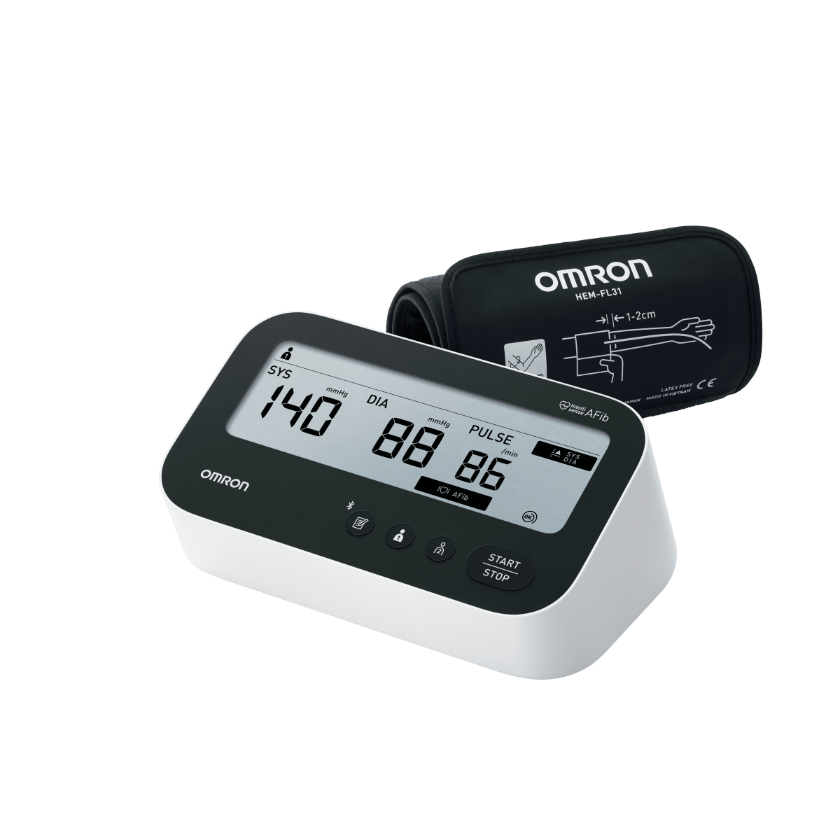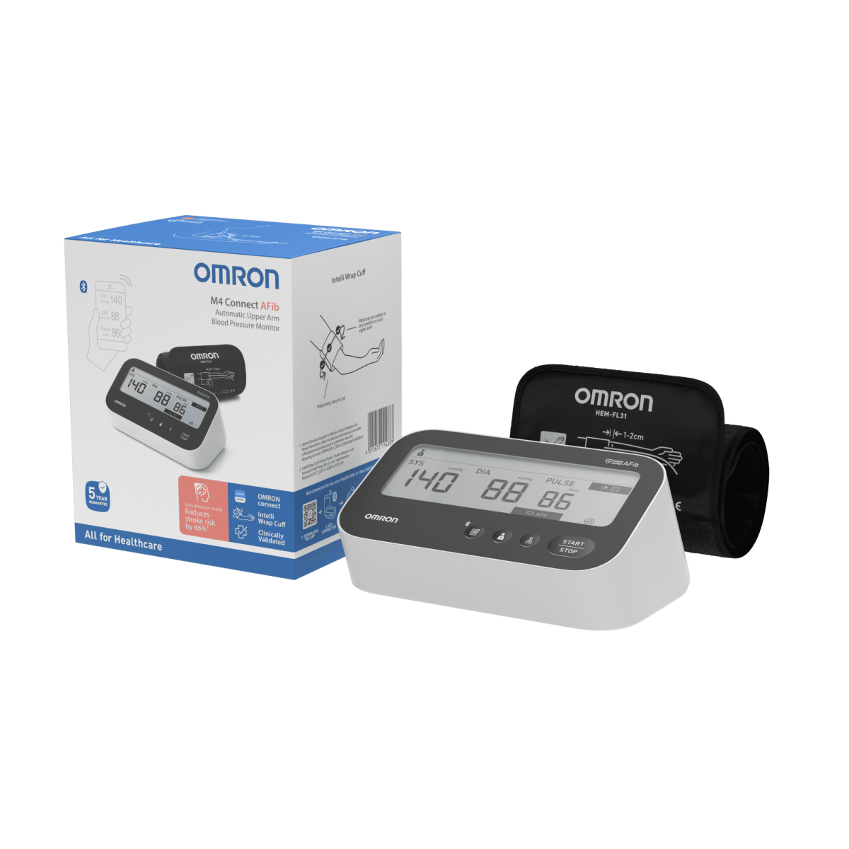 Le M4 Connect AFib d’OMRON détecte la fibrillation auriculaire à chaque mesure et assure un suivi précis depuis la maison. Grâce au brassard Intelli Wrap et à l’application OMRON connect, il offre une expérience fiable, simple et parfaitement adaptée au suivi cardiovasculaire.
