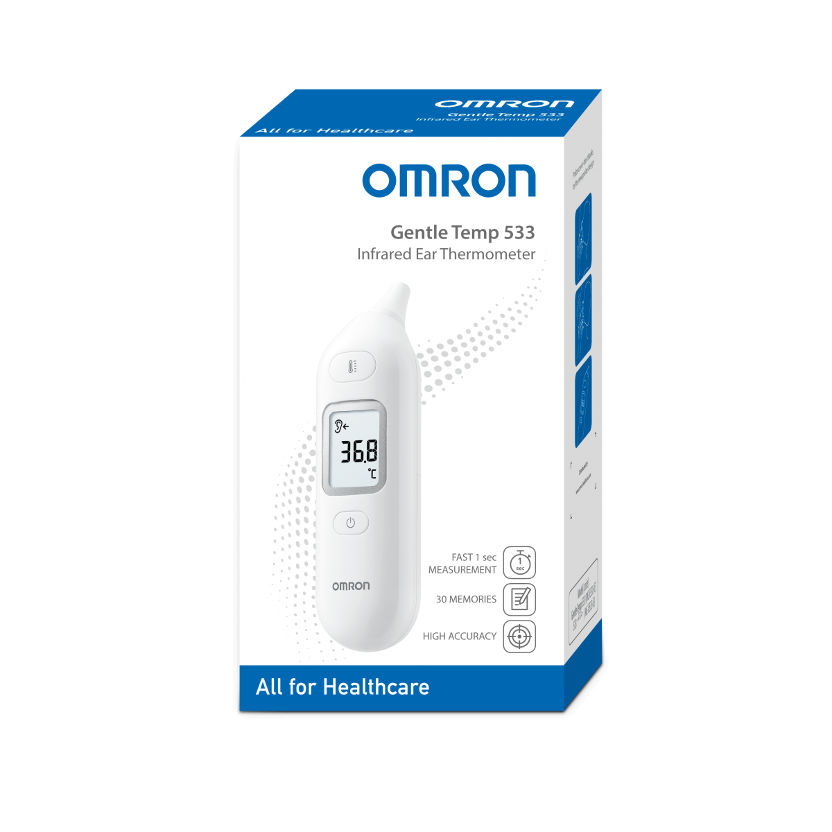 Le Omron GT533 est un thermomètre auriculaire infrarouge offrant une mesure ultra-rapide en 1 seconde. Conçu pour un usage familial et professionnel, il se distingue par son utilisation sans couvre-sonde, éliminant ainsi le besoin de consommables. Doté d'un écran rétroéclairé et d'un mode silencieux, il permet un suivi précis et discret de la température pour les patients de tout âge.
